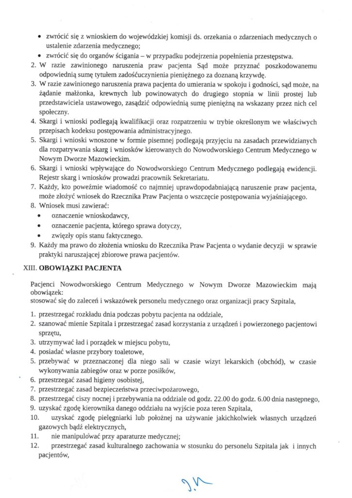 W celu zapewnienia jasnych zasad zgłaszania skarg i wniosków oraz podnoszenia jakości opieki i obsługi pacjentów w Nowodworskim Centrum Medycznym wprowadzono Procedurę przyjmowania, rejestrowania i rozpatrywania skarg i wniosków.